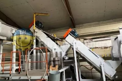 APRO-AMIS a hot complete washing line to process PET. Introducing a complete plastic film washing line in good working condition. Complete washing line to washing PET up to 500 Kg/h, depending on the type of material and feeding rate. Brand & Model: APRO-AMIS Material that can be processed: PET Output: Up to 500 kg/h, depending on the type of material and feeding rate. Line composition- Loading transporter: Conveyer belt with Metal Detector length 10000 mm width 700 mm drive 2,2 kW