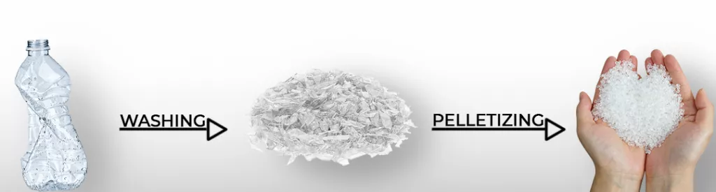 PET resins obtained from plastic bottles are reused in the manufacturing of various polymer products. The technology of turning old bottles into raw materials again is of the highest importance. The process of recycling PET bottles is as follows: